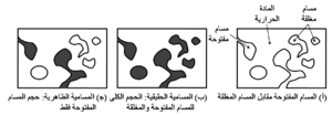 يوضح شكل 1 الفرق بين المسامية الظاهرية والحقيقية، ونوضح فيما يلى الخطوات المتبعة في تحديد هذه الخصائص باستخدام أسلوب التفريغ والضغط. فهذه القياسات البسيطة مفيدة إلى حد ما في المقارنة بين الحراريات، ول