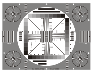 The EIA 1956 resolution chart was specifically designed to be used with television systems. The gradually expanding lines near the center are marked with periodic indications of the corresponding spatial frequency. The limiting resolution may be determined by inspection. The most important measure is the limiting horizontal resolution, since the vertical resolution is typically determined by the applicable video standard (I/B/G/K/NTSC/NTSC-J).