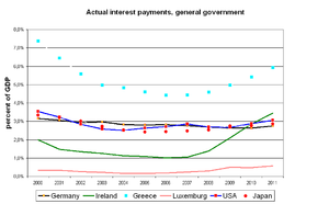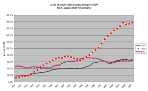 General government debt as percent of GDP, USA, Japan, Federal Republic of ألمانيا.