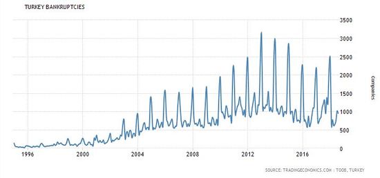 71. ^ "Turkey Bankruptcies". Trading Economics. 2018-10-4. {{cite web}}: Check date values in: |date= (help)
