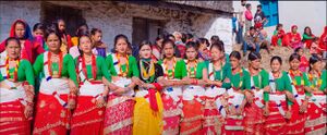 Dhan Nach of Limbu people, Syabru (dance) of Sherpa and Hyolmo people, Sakela of Rai people, Deuda of Khas people are some of the popular circle dances of Nepal.[55]