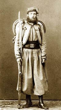- Lithograph of a Zouave soldier by Lucien Lefevre, 1898, for Absinthe Mugnier