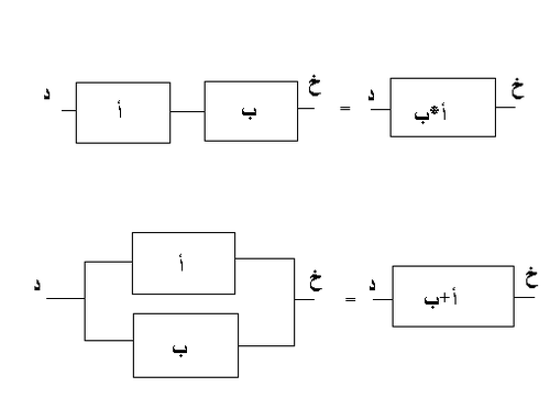 إذا إعتبرنا د و خ مداخل و مخارج المنظومة و أ و ب دالة التحويل النظام وإذا ربطنا النظم أ و ب كما هو مبين في الصورة فإن دالة التحويل تصبح كما هو مبين أسفله.