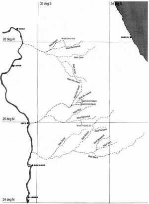 - ^ أ ب Murray, G.W. (Oct 1925). "The Roman Roads and Stations in the Eastern Desert of Egypt". The Journal of Egyptian Archaeology. 11 (3): 138–150. Retrieved Aug 24, 2021.