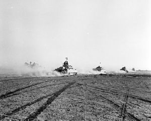 دبابة في اشتباك أثناء حملة الصحراء الغربية.
