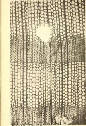 A thin transverse section showing the internal structure of conifer wood