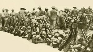 The number of Chinese nationals who died in the war is unknown, and estimations are controversial. European records put the number at only 2,000, while Chinese scholars estimate the number to be as high as 20,000.[20] While most died of the Spanish flu epidemic of 1918, there were also victims of shelling, landmines, and poor treatment. Their remains are interred in dozens of European graveyards. The cemetery at Noyelles-sur-Mer, for example, contains 838 Chinese gravestones.[13]