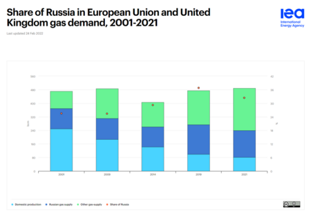 - ^ أ ب ت ث International Energy Agency (24 February 2022). "Gas Market and Russian Supply". IEA. Retrieved 27 April 2022.