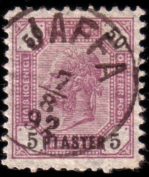 The stamps used were Austrian stamps for Lombardy-Venetia and, after 1867, Austrian Levant stamps, as pictured here.[47]