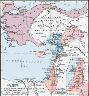 Unsurprisingly, the relationship between caliph and vizier remained extremely hostile: according to Usama ibn Munqidh, the two despised each other, with the Caliph conspiring to kill Ibn al-Sallar, and the latter seeking to depose the Caliph. The mutual hatred of both men was only kept in check by the grave external threats faced by the empire from the Crusader Kingdom of Jerusalem.[2] Ibn al-Sallar entertained the notion of an alliance and joint action with the Zengid ruler of Aleppo, Nur al-Din, but this did not come to pass, as the latter was focused on capturing Damascus at the time.[1] Nevertheless, following the sack of Farama by the Crusaders, in 1151/2 Ibn al-Sallar mobilized the Fatimid navy to raid Christian shipping along the coasts of the Levant from Jaffa to Tripoli, Lebanon. The fleet inflicted significant casualties and returned victorious.[2][5] This success strengthened Ibn al-Sallar's position domestically, but was hollow, as neither the Fatimids nor Nur al-Din followed it up; in contrast, in early 1153 the Crusaders launched an attack on the Fatimid outpost of Ascalon.[2]