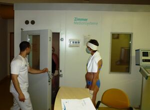 Cryotherapy patients during preparation of treatment of c. 3 minutes