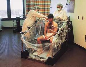 المعالجة بالماء تستخدم في علاج ضحايا الحرائق. ويزود خزان الدُردور ببطانة بلاستيكية لأغراض صحية.
