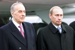 Vladimir Putin with Heydar Aliyev in Azerbaijan at Bina airport.