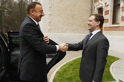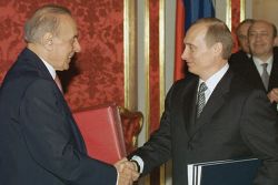 President Putin with President Heydar Aliyev of Azerbaijan during a ceremony for signing Russian-Azerbaijani documents.