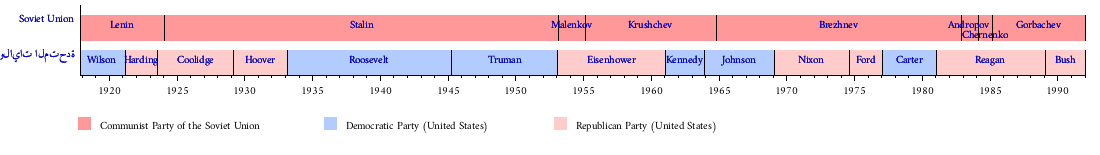 Leaders of the Soviet Union and the United States from 1917 to 1991.