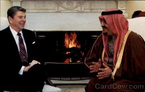 وكان الملك السعودي فهد بن عبد العزيز في زيارته لواشنطن عام 1985؟، قد أهدى الرئيس الأمريكي رونالد ريگان سيفاً مرصعاً بالألماس وهدايا ثمينة أخرى، فرد عليه الرئيس ريجان باهدائه نسخة حديثة من كتاب "طيور أمريكا" لا يتعدى ثمنها 30 دولاراً.