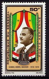 طابع سنغالي بمناسبة وفاة جمال عبد الناصر، 1970.