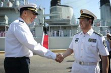 وفي 13 أغسطس 2012، قامت سفن من الأسطول الحادي عشر للمرافقة من بحرية جيش التحرير الشعبي،[6] بقيادة أميرال المؤخرة يانگ جون-فـِيْ، بالرسو في قاعدة حيفا البحرية في إسرائيل[7] في زيارة حسن نوايا لمدة أربعة أيام،[6] احتفالاً بالذكرى العشرين للتعاون بين قوات الدفاع الإسرائيلية وجيش التحرير الشعبي (الصيني).[7] وقد رحب بالسفن وطواقمها قائد قاعدة حيفا البحرية، الجنرال إلي شرڤيط[7] ومسئولون من السفارة الصينية بإسرائيل.[6]