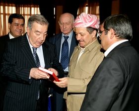 وفي اليوم التالي استقبل الوفد من قبل مسعود برزاني رئيس إقليم كردستان. إنه طبعا تذكر زيارتي بريماكوف الى الاكراد في أعوام الستينيات ومطلع السبعينيات حين كان مصطفى برزاني ما زال على قيد الحياة بينما كان مسعود بارزني يدير محطة اذاعة "صوت كردستان العراق". وأشار مسعود البرازني بصورة خاصة إلى الدور الهام الذي مارسه بريماكوف كوسيط في المفاوضات مع صدام حسين والتي اختتمت بتوقيع معاهدة مارس/آذار عام 1970 التي اعلنت منح كردستان الحكم الذاتي. وتمت استعادة ذكريات كثيرة حول الصفحات المأساوية من تاريخ كردستان. كما جرى الحديث عن الأحداث الأخيرة والشخصيات ومنها صدام حسين.
