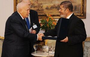 - ^ "مرسي: اتفقت مع رئيس اليونان على رفض أي تدخل عسكري في سوريا". جريدة الأهرام. 2012-10-18. Retrieved 2021-12-26.