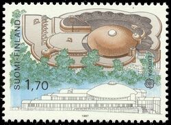Postage stamp featuring "Metso", the Tampere Central Library in Finland, by Reima and Raili Pietilä.