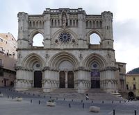 حمل رهبان فرنسا في القرن الثاني عشر الطراز القوطي إلى أسبانيا فوق جبال البرانس، كما نقلوا طراز العمارة الرومنسي إلى تلك البلاد في القرن الحادي عشر. وكانت كثدرائية سان سلفادور القائمة في بلدة أفيلا الصغيرة (1091 وما بعدها) هي بداية الانتقال من الطراز الرومنسي إلى القوطي، وذلك بما احتوته من العقود المستديرة، والباب القوطي الطراز، والعمد الشيقة التي في القبا والتي ترتفع حتى تتصل بالأضلاع المستدقة في القبة. واحتفظ أهل سلمنقة Salamanca الأتقياء الكثدرائية القديمة التي تمثل دور الانتقال والتي شيدت في القرن الثاني عشر إلى جانب الكثدرائية الجديدة التي شيدوها في القرن السادس عشر، وتكون الكنيستان معا مجموعة من أكبر المجموعات البنائية وأعظمها روعة في أسبانيا. وفي طراجونة Taragona كانت الصعاب المالية سبباً في إطالة عملية بناء الكرسي الكهنوّتي من 1089 إلى 1375، وإن ما يتصف به البناء من بساطة ومتانة ليوائم الزخارف القوطية والإسلامية، وما فيه من الأروقة- المكونة من عمد رومنسية تحت قبة قوطية- لمن أجمل ما أخرجه فن القصور الوسطى.
