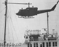 الوقوف، خلف الجالسين، هم الطيارين الستة للطائرات پايپر، الذين تم انقاذهم جميعاً؛ الرائد إنوخ مشمال قرت، قائد كوماندو الانقاذ.