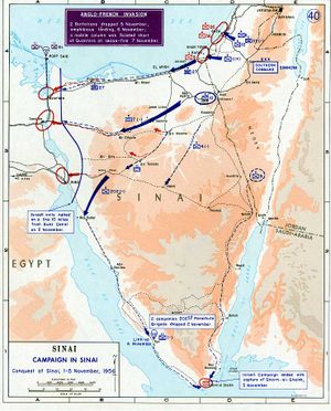 في أكتوبر 1956 شنت القوات الإسرائيلية عملية قادش (الأسم الكودي لعملية الهجوم الإسرائيلية على سيناء أثناء العدوان الثلاثي) بالتعاون مع قوات بريطانية وفرنسية، وهي العملية الوحيدة في تاريخ إسرائيل التي تم تنفيذها بالتعاون مع دول أجنبية.