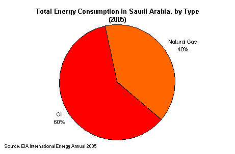 يتمثل الطلب الرئيس على الطاقة في قطاعاتِ النقلِ والمواصلاتِ وتوليدِ الطاقة وإنتاج الغاز الطبيعي للاستهلاك الصناعي والطبخ المنزلي. وتُصنف أغلب المصانع السعودية بأنها ذات استهلاك عالي للطاقة، كمصانع البتر وكيميائيات والأسمدة والبلاستيك والفولاذ وغيرها. يُوضّح الجدول التالي مقارنةً بين كثافة الطاقة المقاسة بواسطة الاستهلاك الكهربائي بالنسبة إلى دخلِ الفرد (capita) وكذلك بالنسبة للناتج المحلي الإجمالي للفرد ((GDP مقسومةً على وحدة الطاقة المستخدمة في دولٍ مختلفةٍ ومن ضمنها المملكة العربية السعودية.