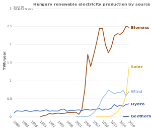 - ^ "Share of electricity production from solar - Hungary". Our World in Data. 2024-06-20. Retrieved 2024-11-30.