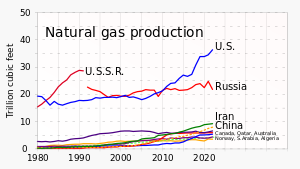 - ^ "International / DATA / Natural Gas / Download options / Export CSV (table)". U.S. Energy Information Administration. Archived from the original on 16 October 2024. Retrieved 16 October 2024.