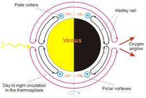 - ^ Piccioni, G.; Drossart, P.; Sanchez-Lavega, A.; Hueso, R.; Taylor, F. W.; Wilson, C. F.; Grassi, D.; Zasova, L.; Moriconi, M. (2007). "South-polar features on Venus similar to those near the north pole". Nature. 450 (7170): 637–640. Bibcode:2007Natur.450..637P. doi:10.1038/nature06209. PMID 18046395.