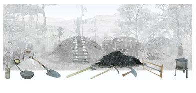معمل إنتاج الكوك يُسخن الفحم الحجري في فرن محكم الإغلاق لإنتاج الكوك الذي يعتبر مادة خام رئيسية في صناعة الفولاذ. وفي الصورة نرى كتلة من الكوك الساخن حمراء اللون تم رفعها من الفرن إلى عربة تسير على قضبان سكة حديد. وستقوم العربة بحملها ونقلها إلى جزء آخر من المعمل حيث تبرّد.