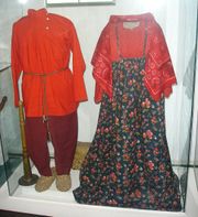 Ethnic Russian clothes include kaftan, kosovorotka and ushanka for men, sarafan and kokoshnik for women, with lapti and valenki as common shoes.