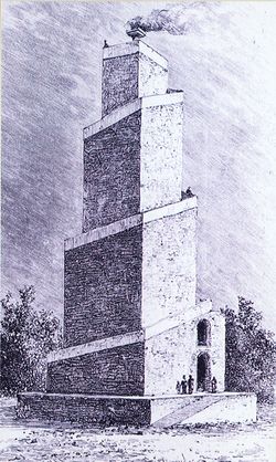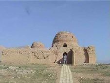 وهناك غير بعيد من هذا الأثر عند سروستان أثر آخر شبيه به وهو مثله لا يعرف تاريخه ويتكون من واجهة ذات ثلاثة أقواس، وبهو أوسط كبير، وحرات واسعة تعلوها قباب بيضية الشكل، وأقواس دائرية، وأنصاف قباب لتقوية البناء. وليس ببعيد أن تكون الدعامات الهيكلية التي يسميها المهندسون بالدعامات "الطائرة" المعروفة في الهندسة القوطية قد تطورت من هذه الأنصاف القباب بأن أزيل منها الهيكل الخارجي الذي تستند إليه(51).