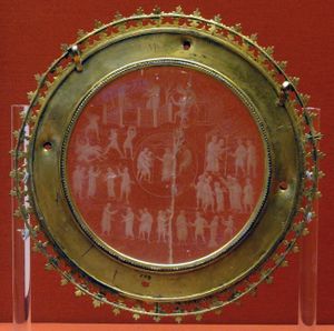 Spolia is the Latin term for "spoils" and is used to refer to the taking or appropriation of ancient monumental or other art works for new uses or locations. We know that many marbles and columns were brought from Rome northward during this period.
