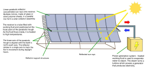 يحيط التصميم بنظام الطاقة الشمسية الحرارية داخل بيت زجاجي يشبه البيوت الزجاجية. يخلق البيت الزجاجي بيئة محمية لتحمل العناصر التي يمكن أن تؤثر سلباً على موثوقية وكفاءة نظام الطاقة الشمسية الحرارية.[42] يتم تعليق المرايا العاكسة للطاقة الشمسية خفيفة الوزن من السقف الزجاجي بواسطة الأسلاك. يضع نظام تتبع أحادي المحور المرايا لاستعادة كمية الضوء الشمسي المثلى. تركز المرايا ضوء الشمس وتوجهه إلى شبكة من أنابيب الصلب الثابتة، والتي يتم تعليقها أيضاً من هيكل البيت الزجاجي.[43] يمر الماء بطول الأنبوب، والذي يتم غليه لتوليد البخار عند تطبيق إشعاع شمسي مكثف. حماية المرايا من الرياح تسمح لها بتحقيق معدلات حرارة أعلى وتمنع تراكم الغبار على المرايا.[42]