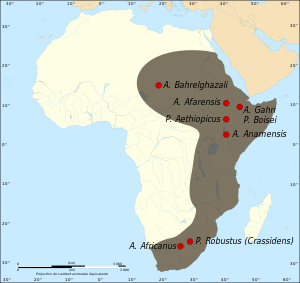 4. ^ أ ب ت Haile-Selassie, Y (27 October 2010). "Phylogeny of early Australopithecus: new fossil evidence from the Woranso-Mille (central Afar, Ethiopia)". Philosophical Transactions of the Royal Society B: Biological Sciences. 365 (1556): 3323–3331. doi:10.1098/rstb.2010.0064. PMC 2981958. PMID 20855306.