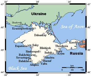 Wydra, Doris (November 11, 2004). "The Crimea Conundrum: The Tug of War Between Russia and Ukraine on the Questions of Autonomy and Self-Determination". Retrieved March 25, 2007.[dead link] - ^ Eastern Europe, Russia and Central Asia 2004, Routledge, 2003, ISBN 1857431871 (page 540)