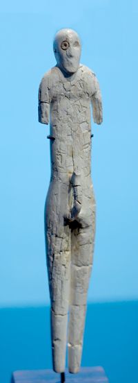 - Kreta – frühminoische Vorpalastzeit gemäß Warren und Hankey (1989) – FM I (3650/3500 حتى 3000 ق.م.).[3] Laut Manning (1995) liegt der Beginn des FM I jedoch wesentlich später, nämlich bei 3100/3000 v. Chr;[4] in der niedrigen und in der hohen Datierung erfolgt er bei 3300 ق.م.