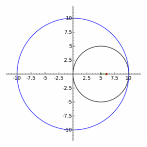 An ellipse (in red) as a special case of the hypotrochoid with R = 2r.