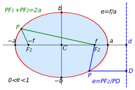 و يعبر القانون (أو المعادلة) على كون نسبة المسافة بين النقطة والبؤرة و المسافة بين النقطة والدليل ثابثة وتساوي معامل الاختلاف المركزي e.