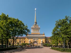 The Russian Admiralty in St. Petersburg is famed for its gilded steeple topped by a golden weather-vane in the shape of a sailing ship.