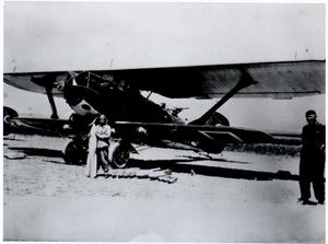 Sabiha Gökçen holding a bomb in front of her Breguet 19, moments before taking off for the bombardment operation over Dersim.