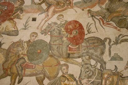 The stylistic changes characteristic of late-antique art mark the end of classical Roman art and the beginnings of medieval art. As a complicated period bridging Roman art and later medieval styles (such as that of the Byzantines), the late-antique period saw a transition from the classical idealized realism tradition (largely influenced by ancient Greek art) to the more iconic, stylized art of the Middle Ages.[52] Unlike classical art, late-antique art does not emphasize the beauty and movement of the body, but rather hints at a spiritual reality behind its subjects.[بحاجة لمصدر] Additionally, mirroring the rise of Christianity and the collapse of the Western Roman Empire, painting and freestanding sculpture gradually fell from favor in the commissioning/artistic community. Replacing them were greater interests in mosaics, architecture, and relief sculpture.[بحاجة لمصدر]