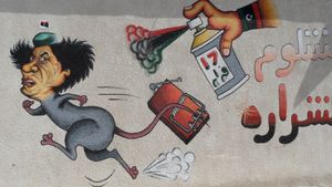 صورت إحدى رسومات الجرافيتي المرسومة بالرذاذ في أحد شوارع طرابلس القذافي على أنه فأر، من خلال شعر "شفشوفة" وقبعته المميزة. وتستدعي الصورة نقد القذافي لخصومه ووصفهم "بالفئران"، كما ذكر في تقرير التلفزيون الأسترالي: "مرتديًا رداءً بنيًا موحدًا ووشاحًا وعمامة ونظارات، قام القذافي بتحريض العامة قائلاً "امسكوا الجرذان"، مشيرًا إلى المتظاهرين المناهضين للنظام."[10]