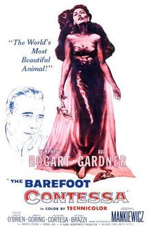 «الكونتيسة الحافية» لمانكفيتش: لم تعد حكايات سندريلا ممكنة في الزمن المعاصر The Barefoot Contessa فيلم 1954 عن الحياة وحب الخيال الجنسي متثلة في ماريا فارگاس من تأليف جوزيف إل واخراج مانكفيتش النجوم همفري بوجارت، آفا غاردنر وادمون اوبراين.