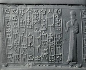 Cylinder seal of Kassite king Kurigalzu II (c. 1332–1308 BC). Louvre Museum AOD 105