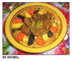 • كسكسي بالبصلة (طبيخ بشرائح البصل والحمص واللحم)