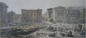 Left to Right: Montagu House, Townley Gallery and Sir Robert Smirke's west wing under construction (July 1828)